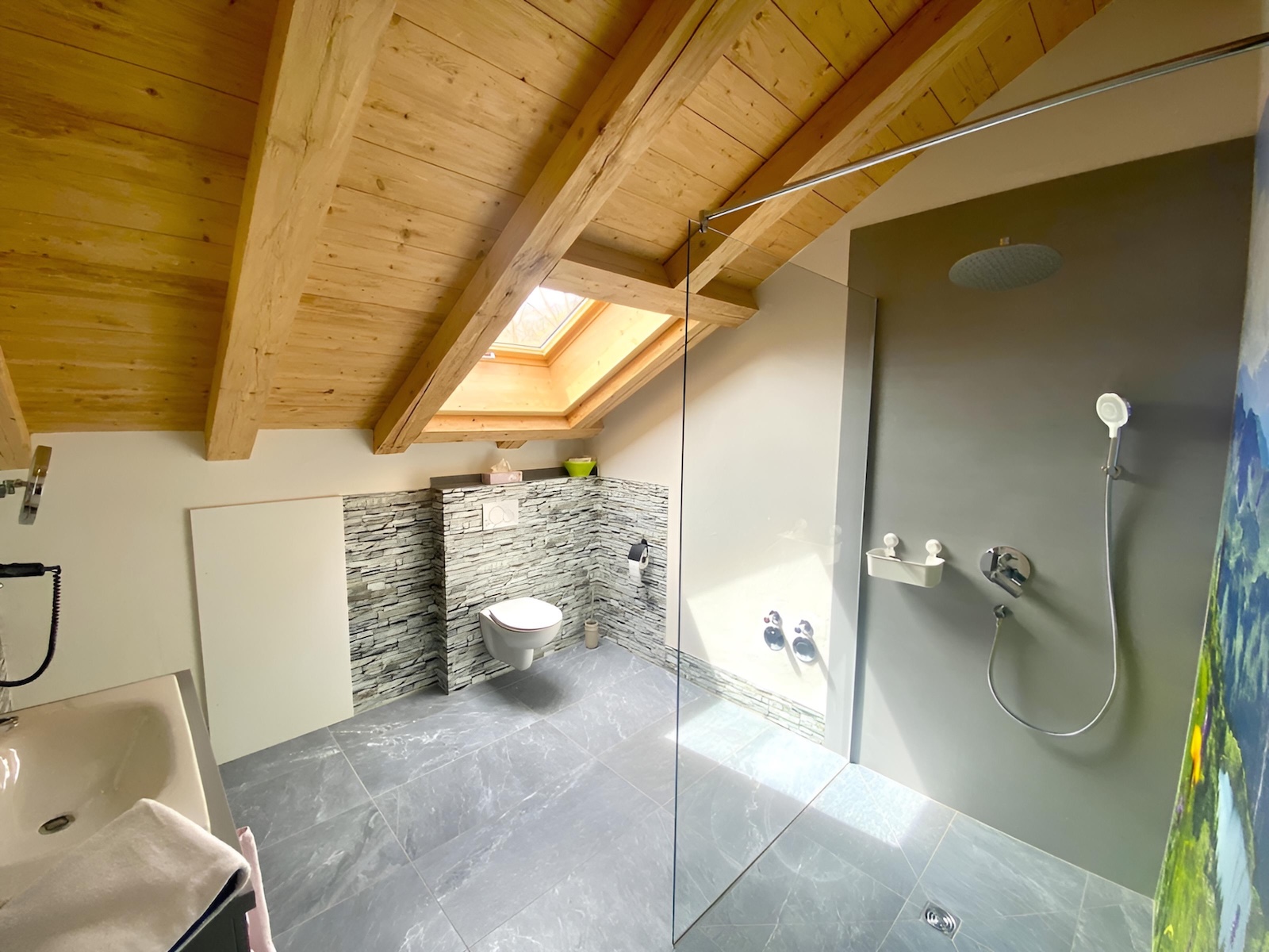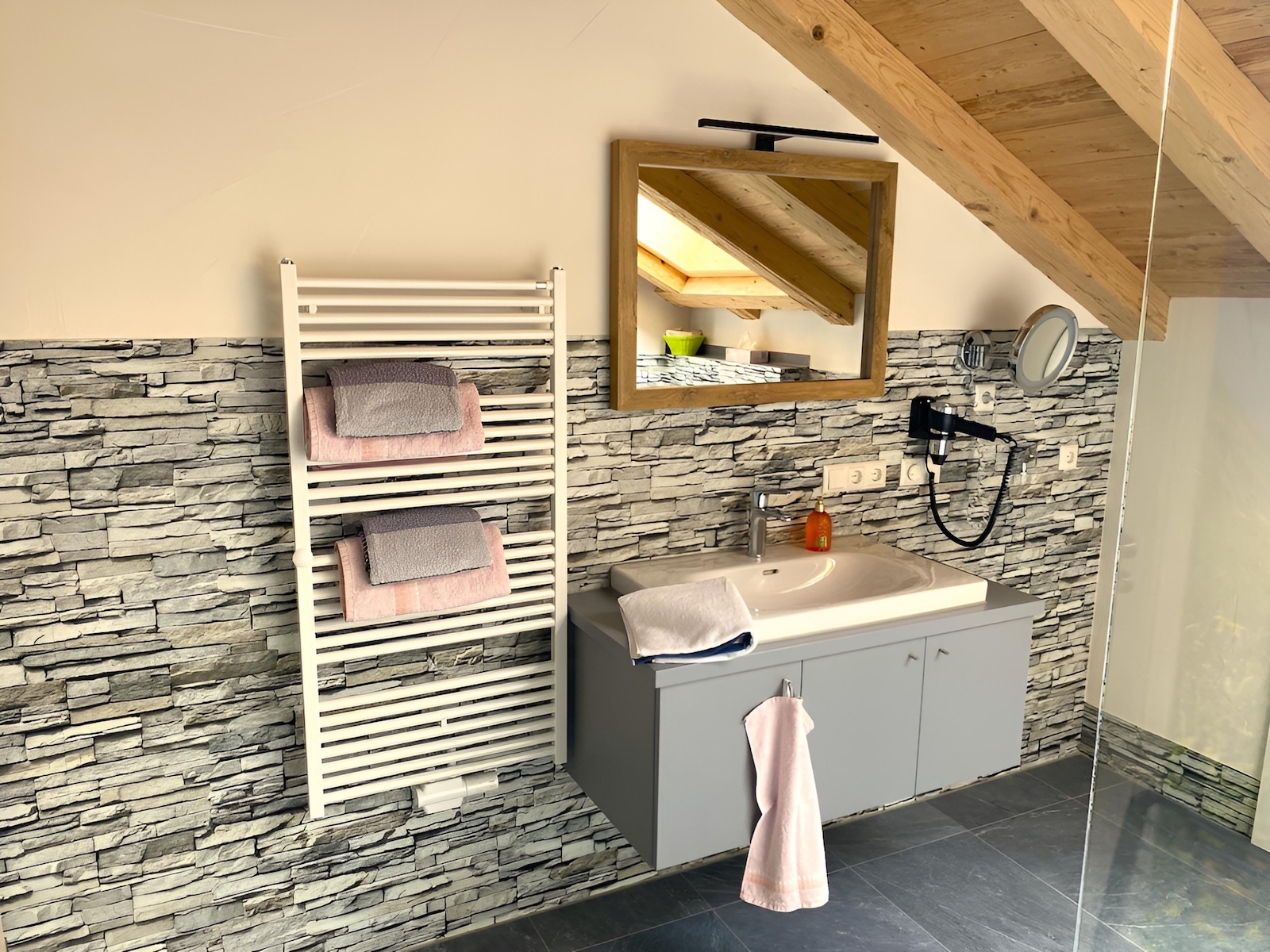 - Bad mit Regenwalddusche, beleuchtetem Kosmetikspiegel und Fön